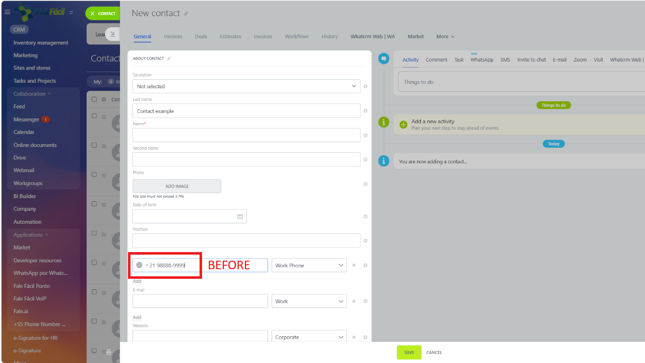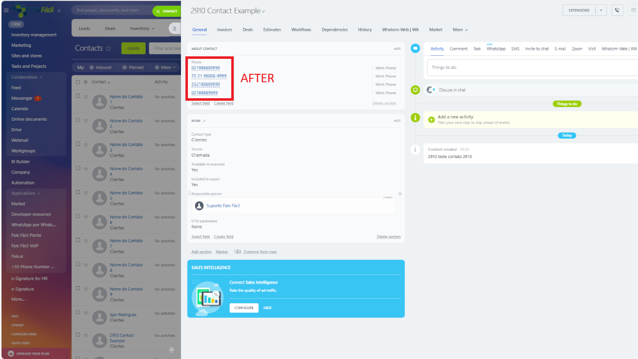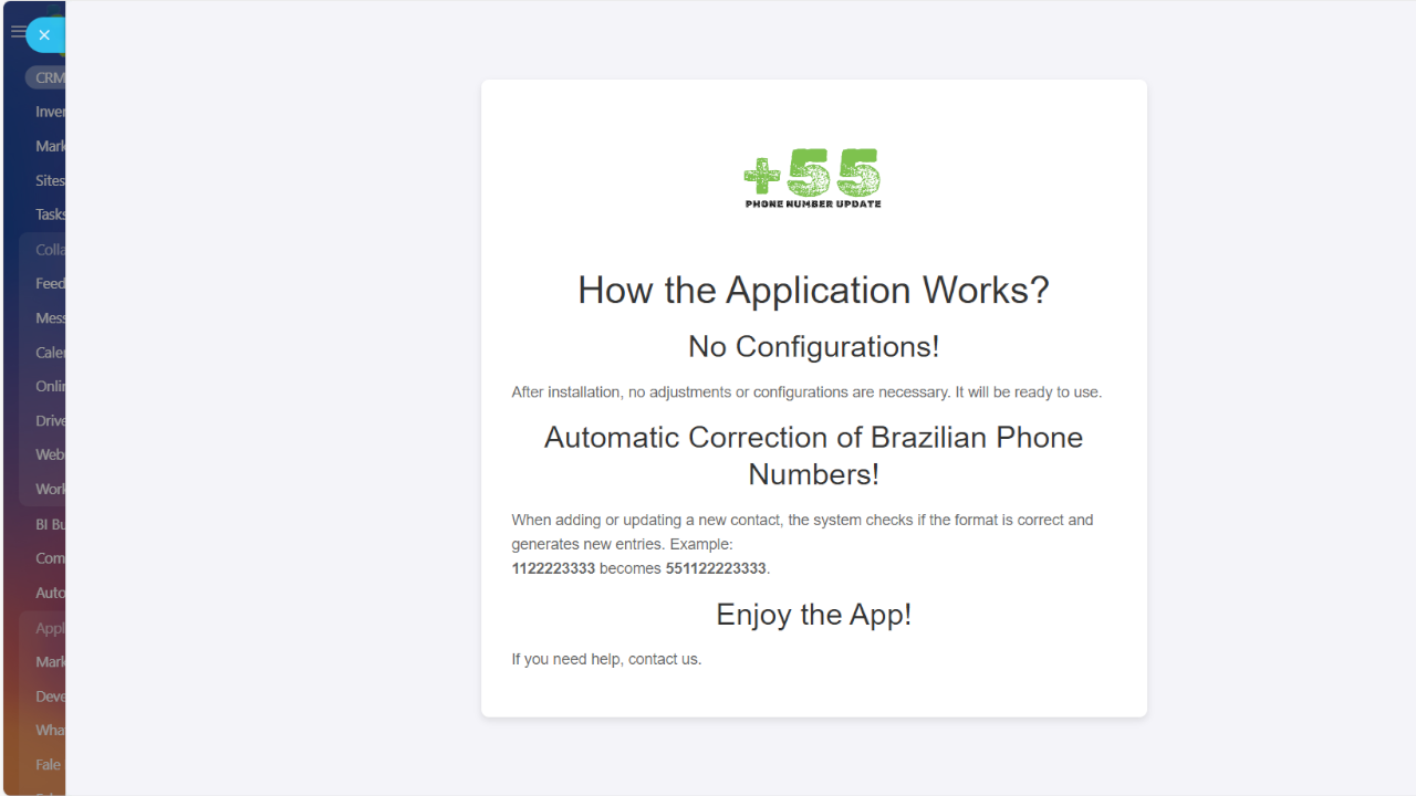 Corrects the telephone numbers in contacts created or updated in your CRM to the Brazilian standard with DDI 55.