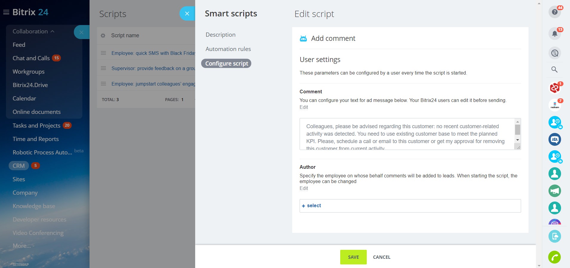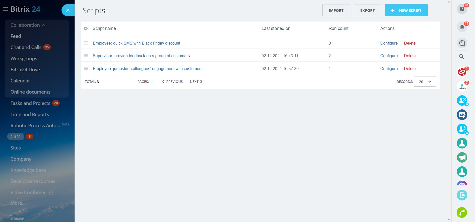 Take advantage of ready-to-use smart scipts to perform standard CRM actions!