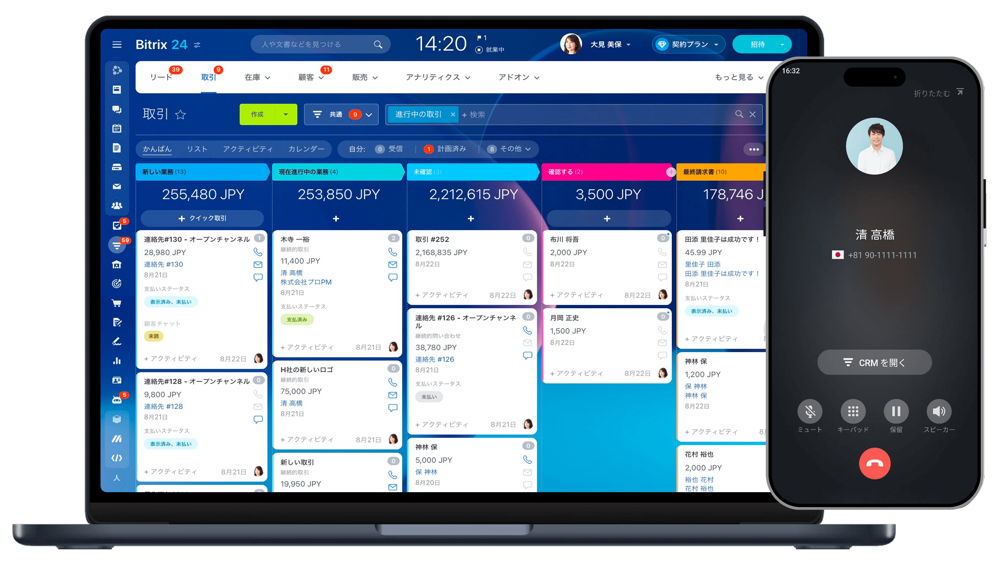 CRMから直接請求書を作成・送信し、取引を迅速に完了できます。