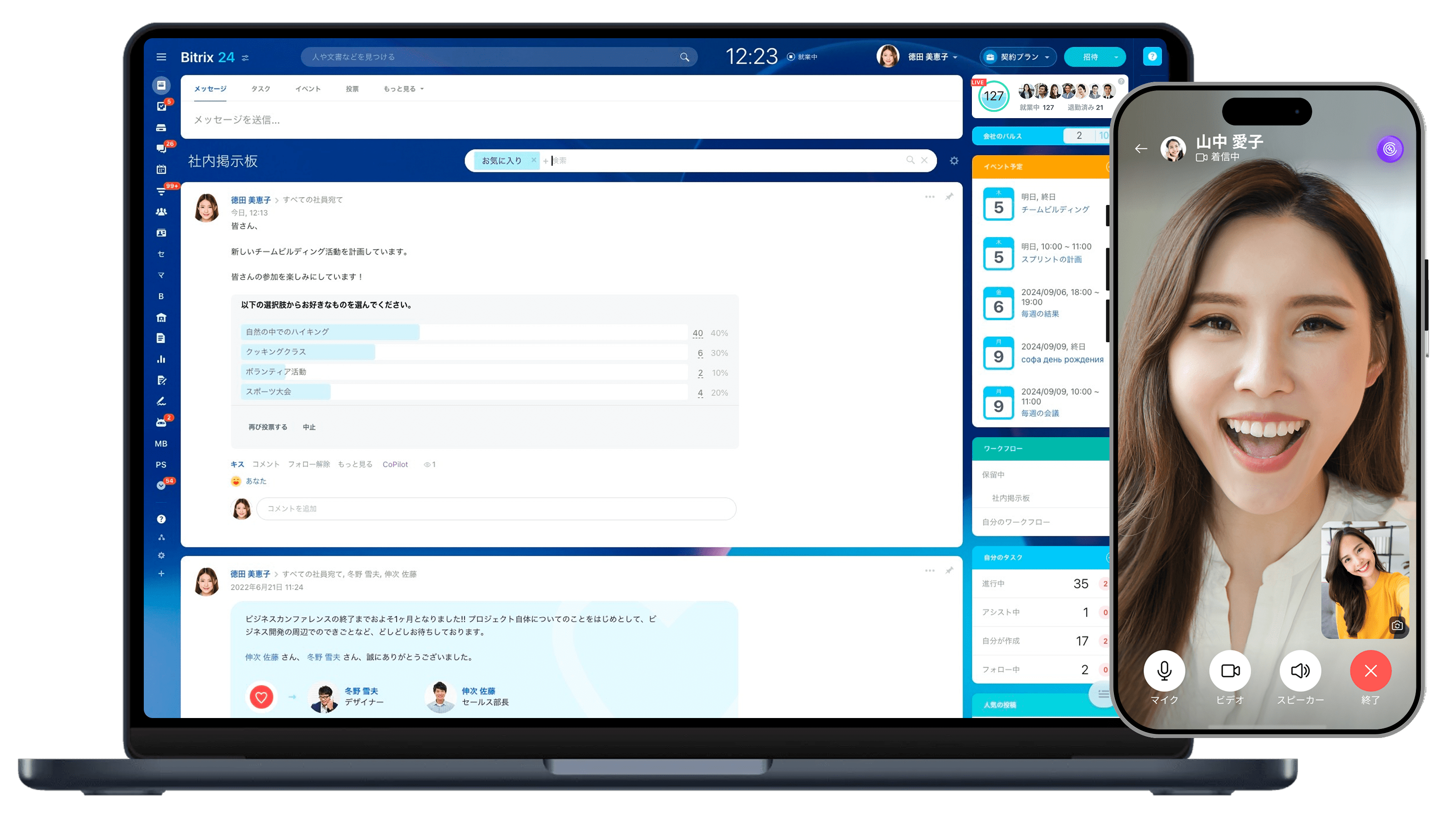 チャットやビデオ通話で、チーム内のコミュニケーションも円滑に行えます。