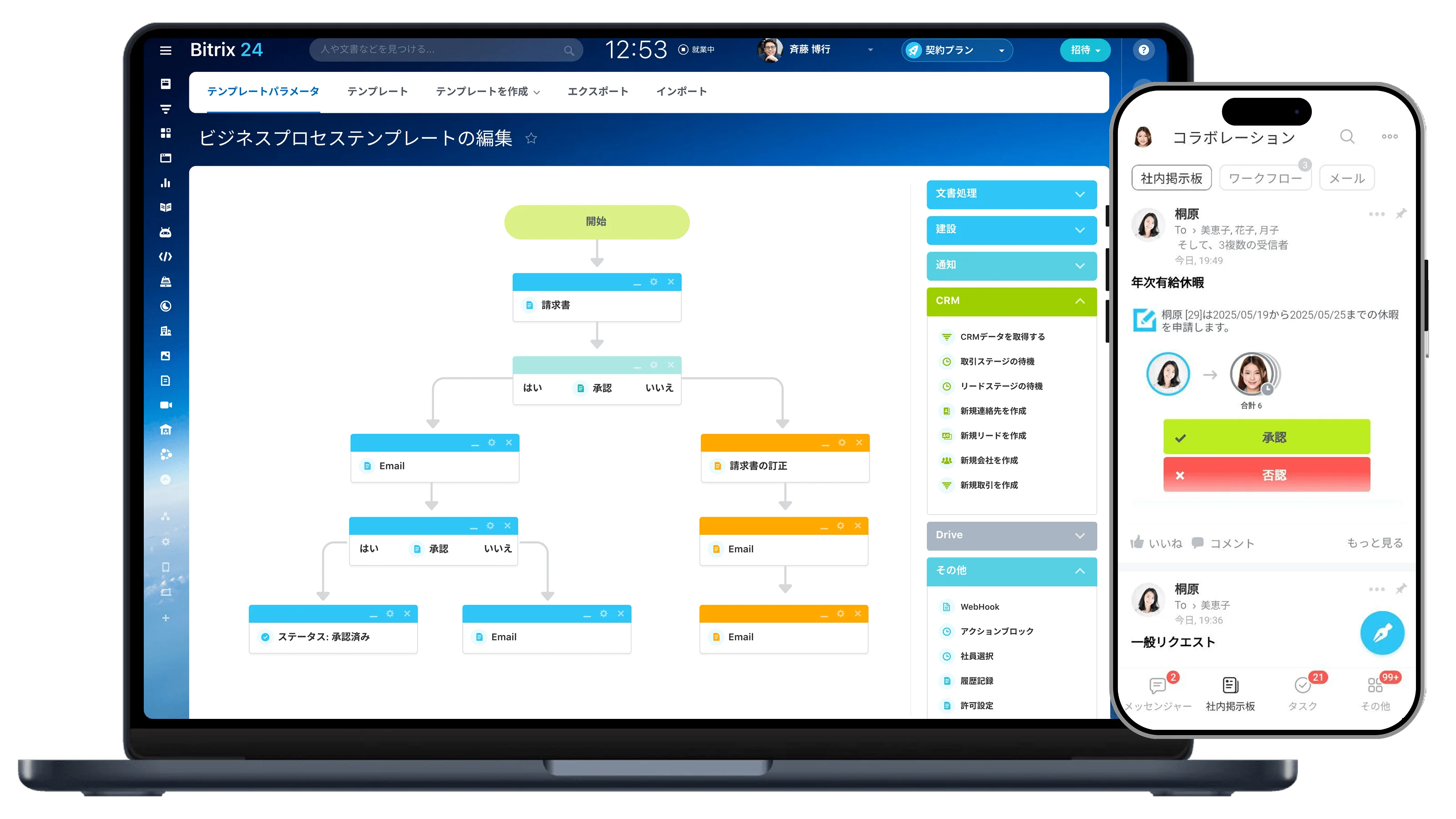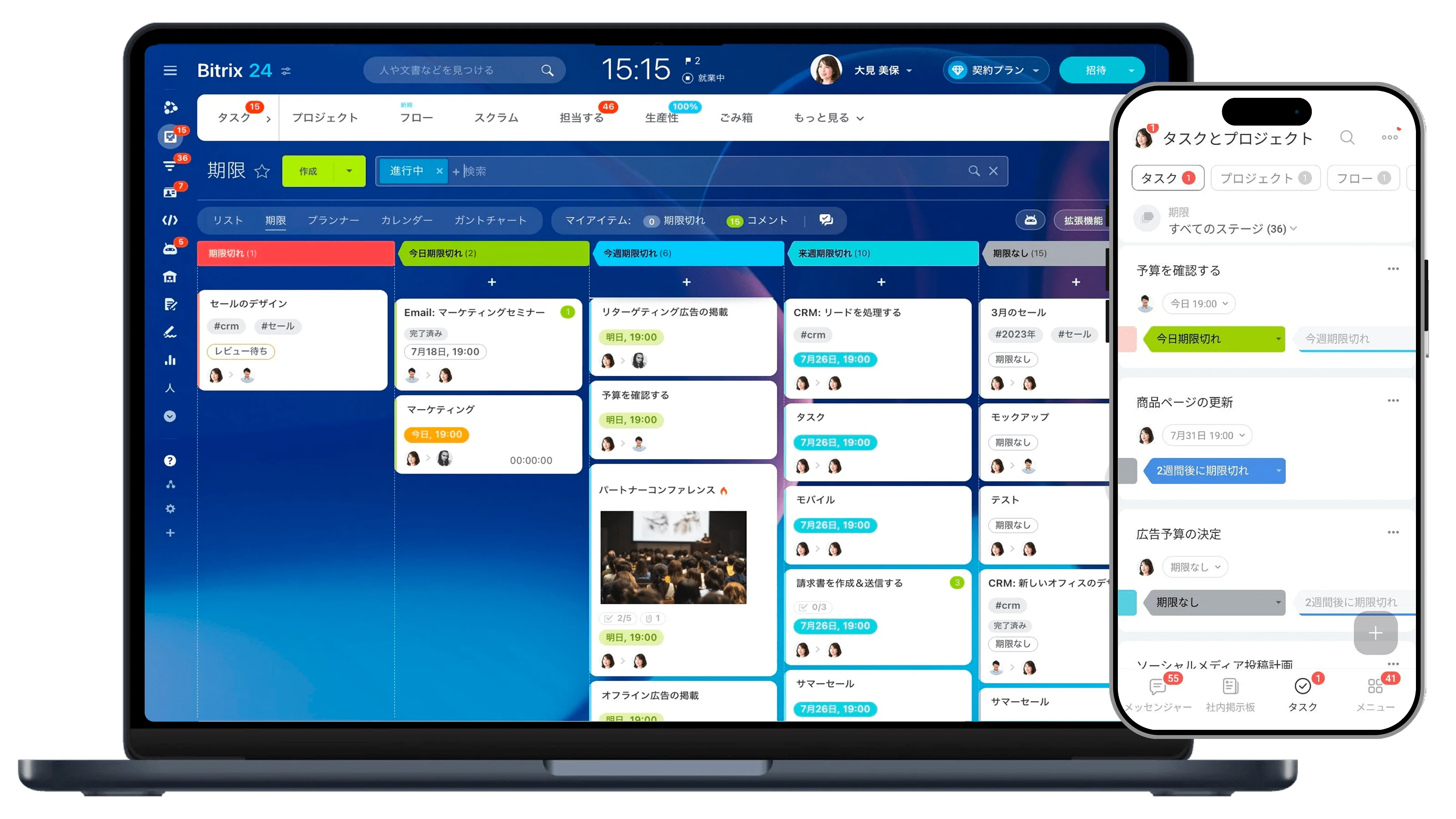 Bitrix24には、リモートワークに必要なあらゆる業務ツールが揃っています。すべて定額料金でご利用いただけます。
