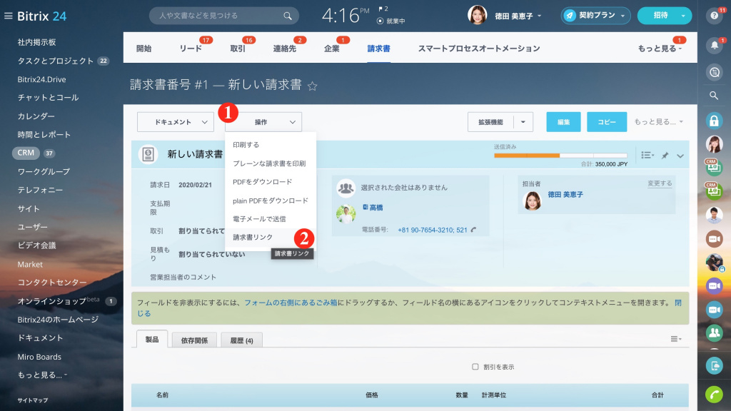 Bitrix24内での決済プロセッサの使用方法は、どのアプリでも同じです。