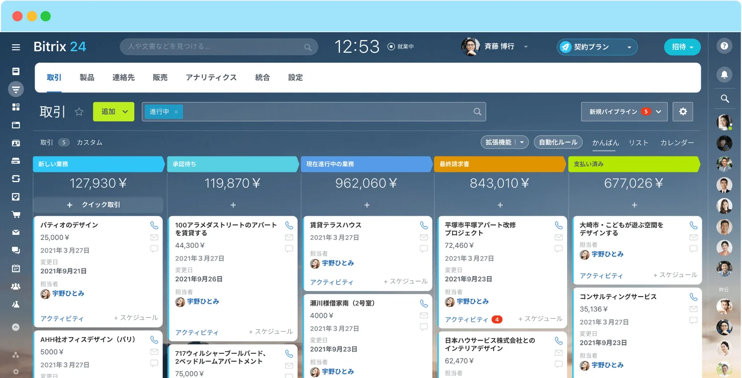 Bitrix24では、Bitrix24 Marketで数多くの連携機能をご利用いただけます。 また、REST APIを使用してお客様独自のアプリケーションを制作することもできます。