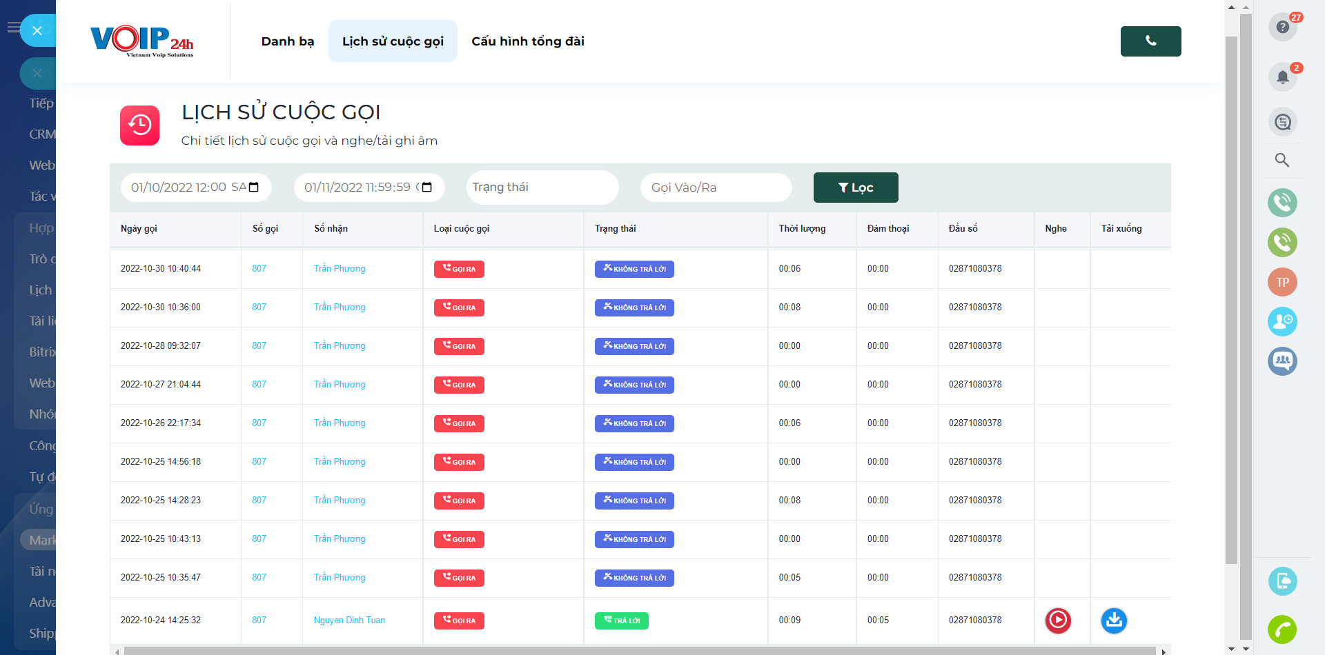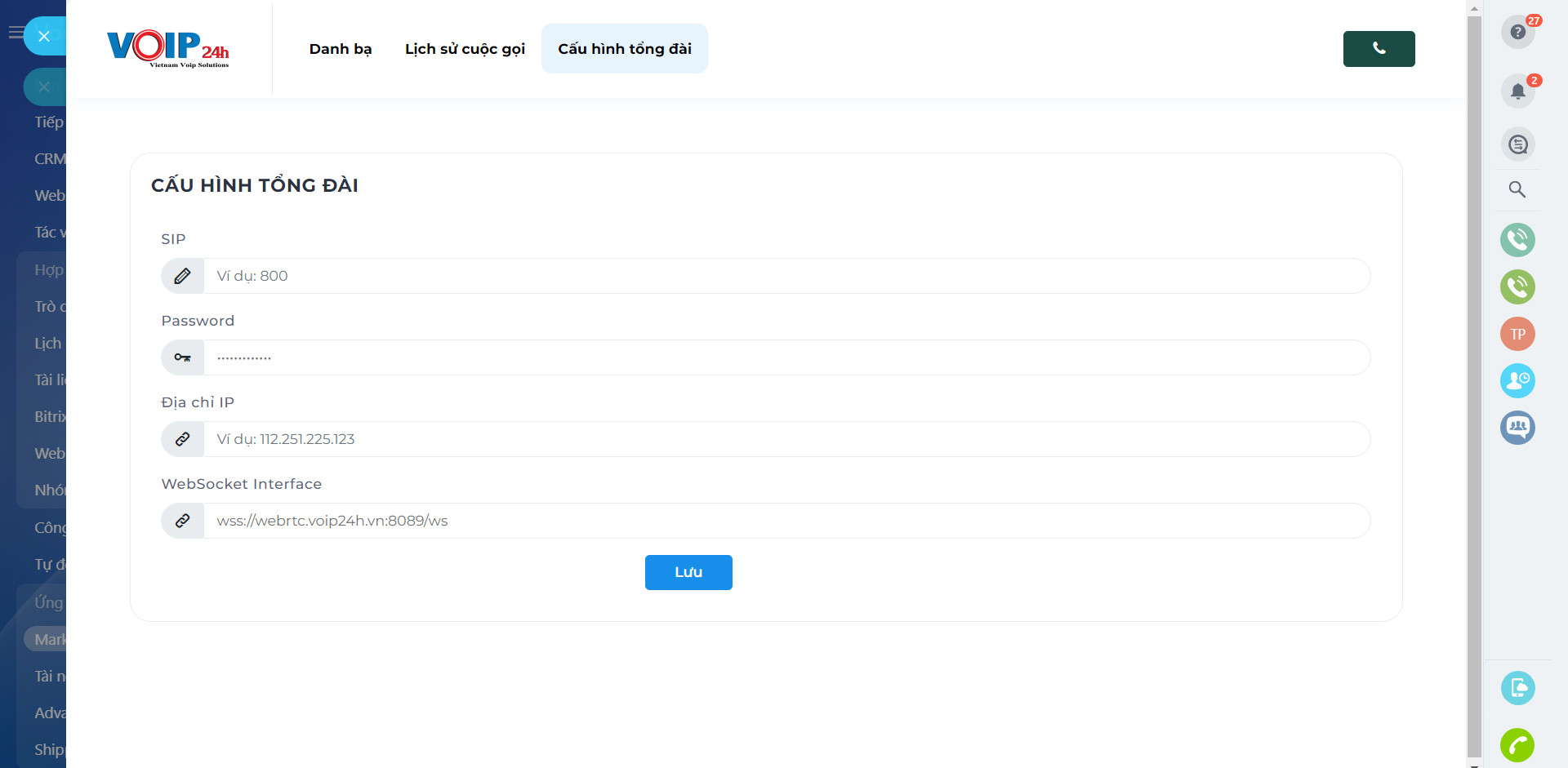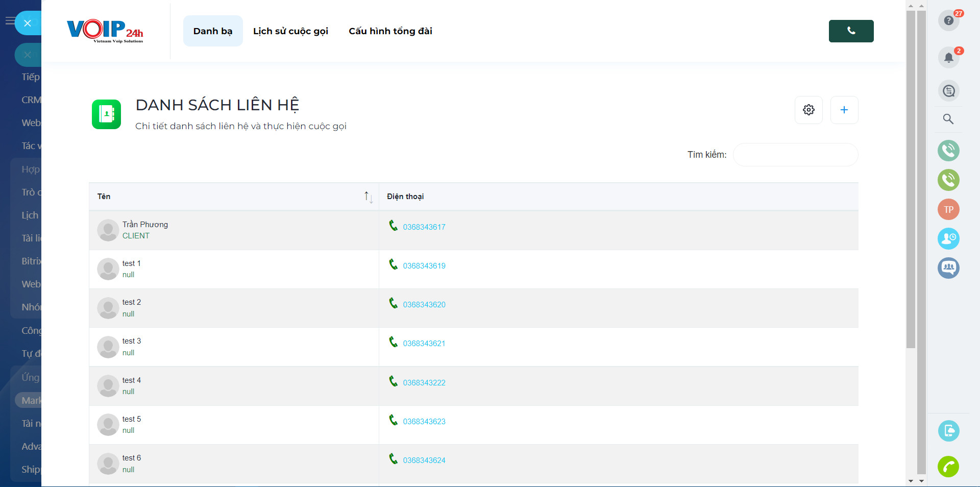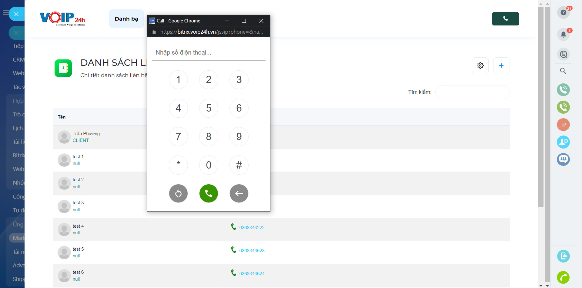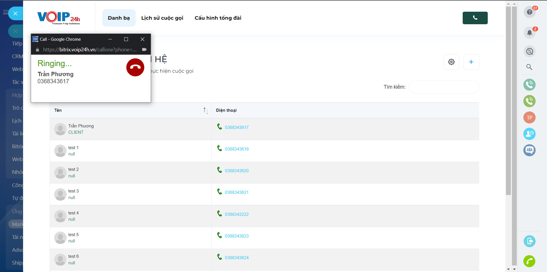 - After installing the application, Bitrix24 customer data contact and VoIp24h accounts will be synchronized back and forth.