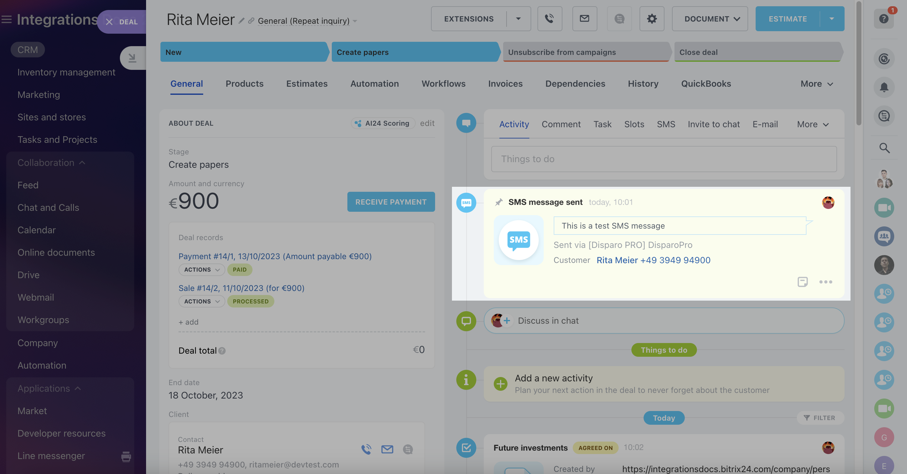 Integrate with Disparo PRO and unlock the ability to send SMS messages to your customers swiftly and securely, all without the burden of additional manual tasks.