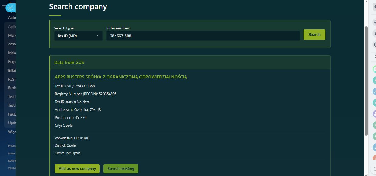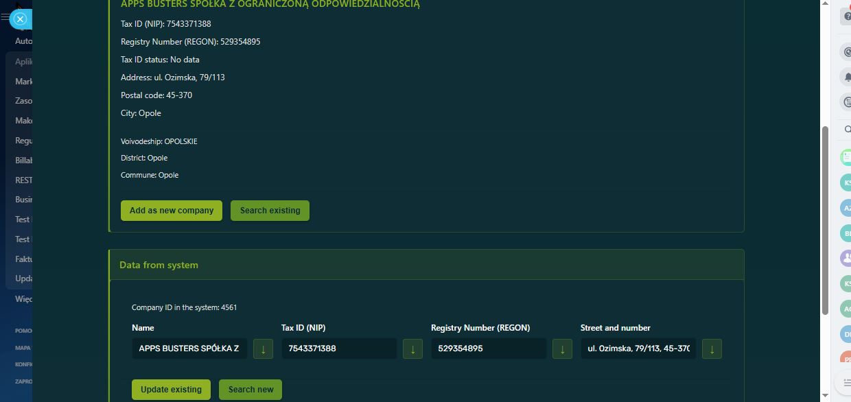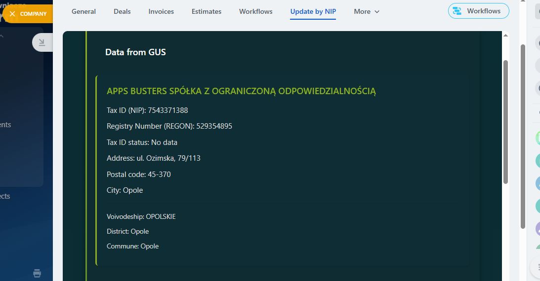 Update Bitrix24 company records using the latest GUS data with a single click.