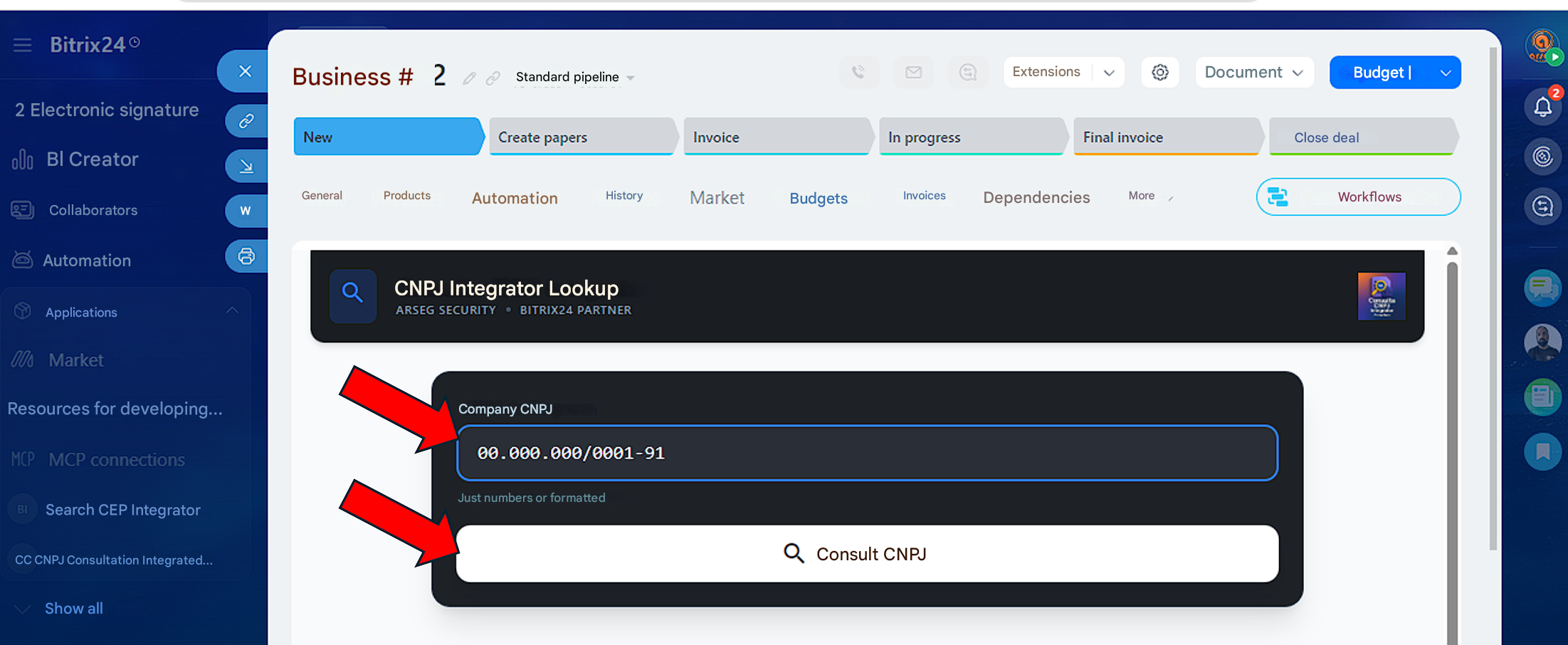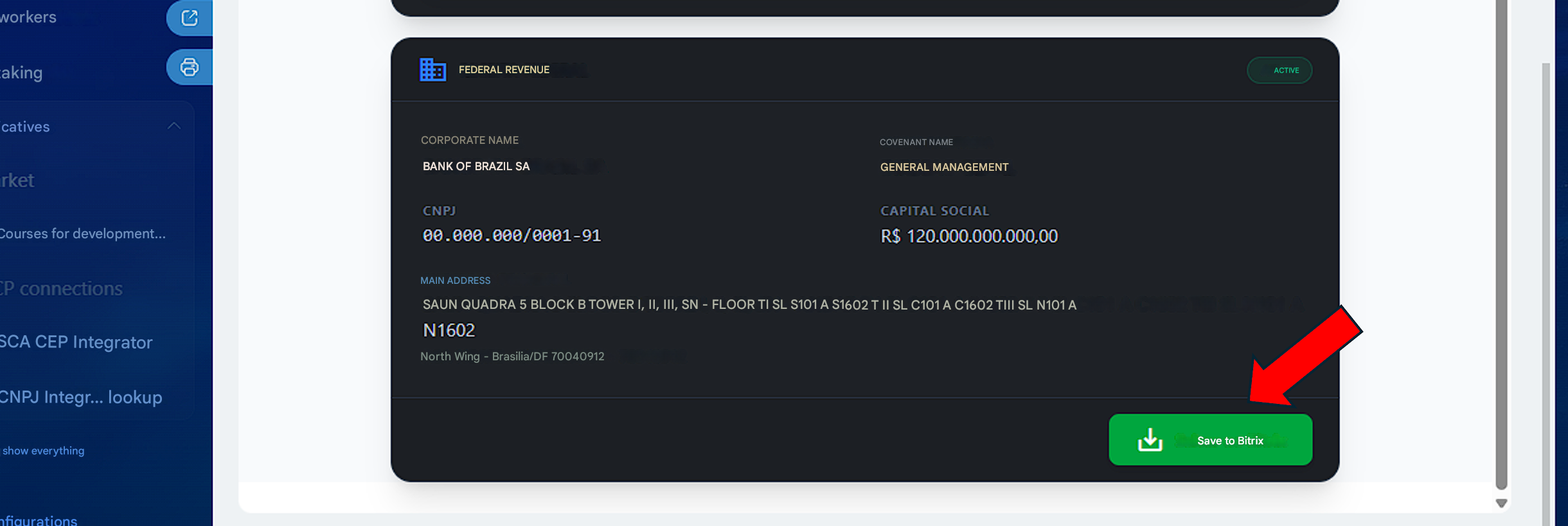 The Consulta CNPJ Integrator app is the ultimate solution to enrich your Bitrix24 database. With just the CNPJ number, the app retrieves official information directly from the Brazilian Federal Revenue database and automatically fills in the Company or Lead fields in your CRM.