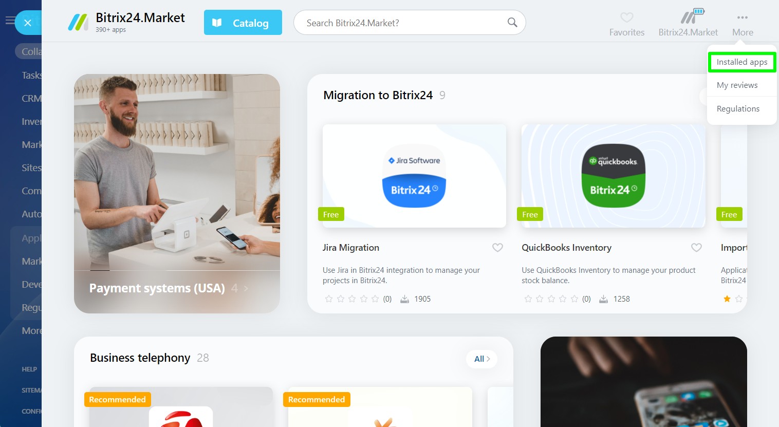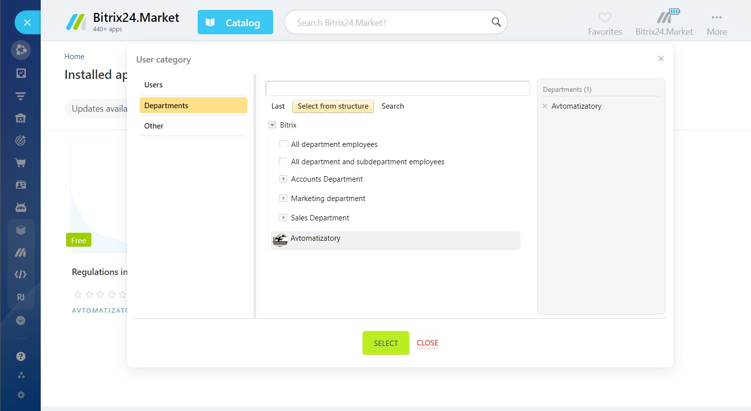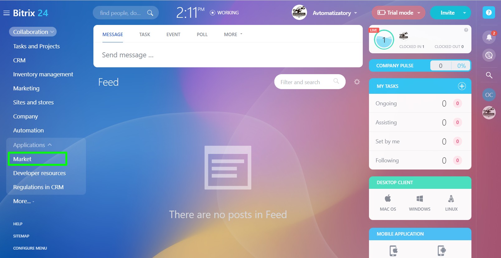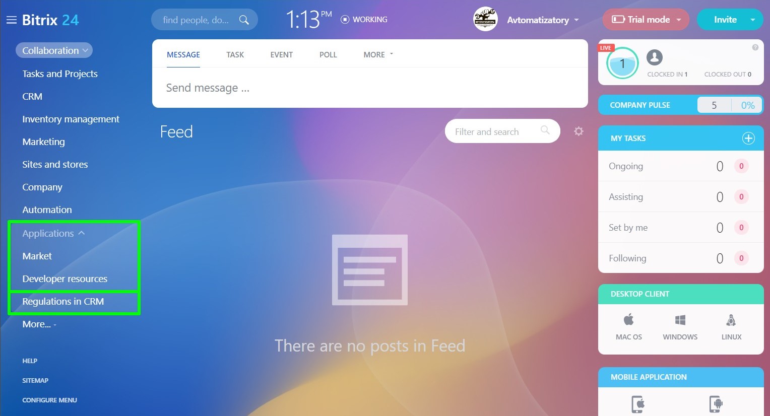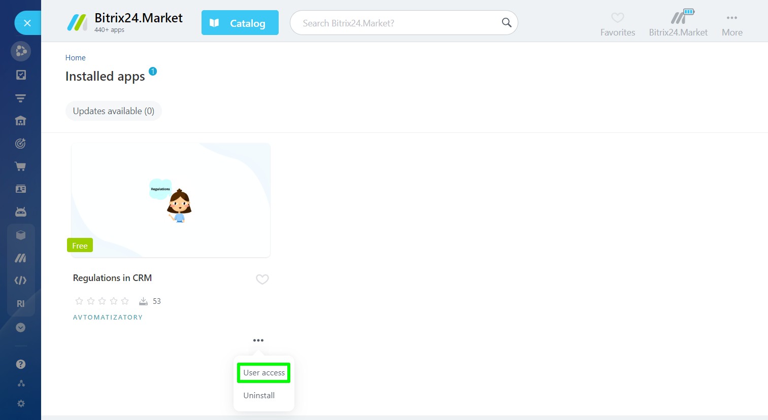 In order to add a new regulation or change an existing regulation, open the application page in the “Applications” section in the left menu of Bitrix24
