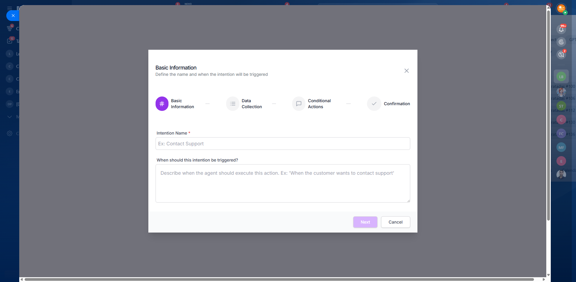 - Quick and simplified training of Agents, allowing the use of text, attachments, and video (YouTube).