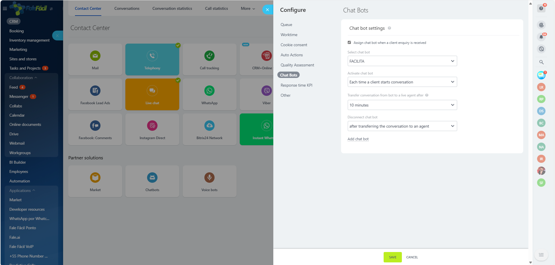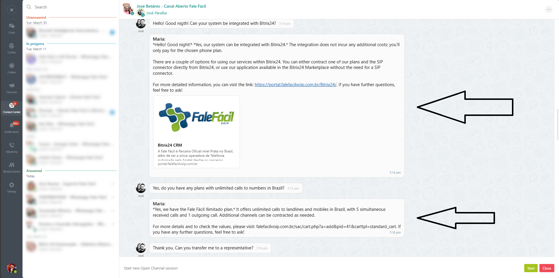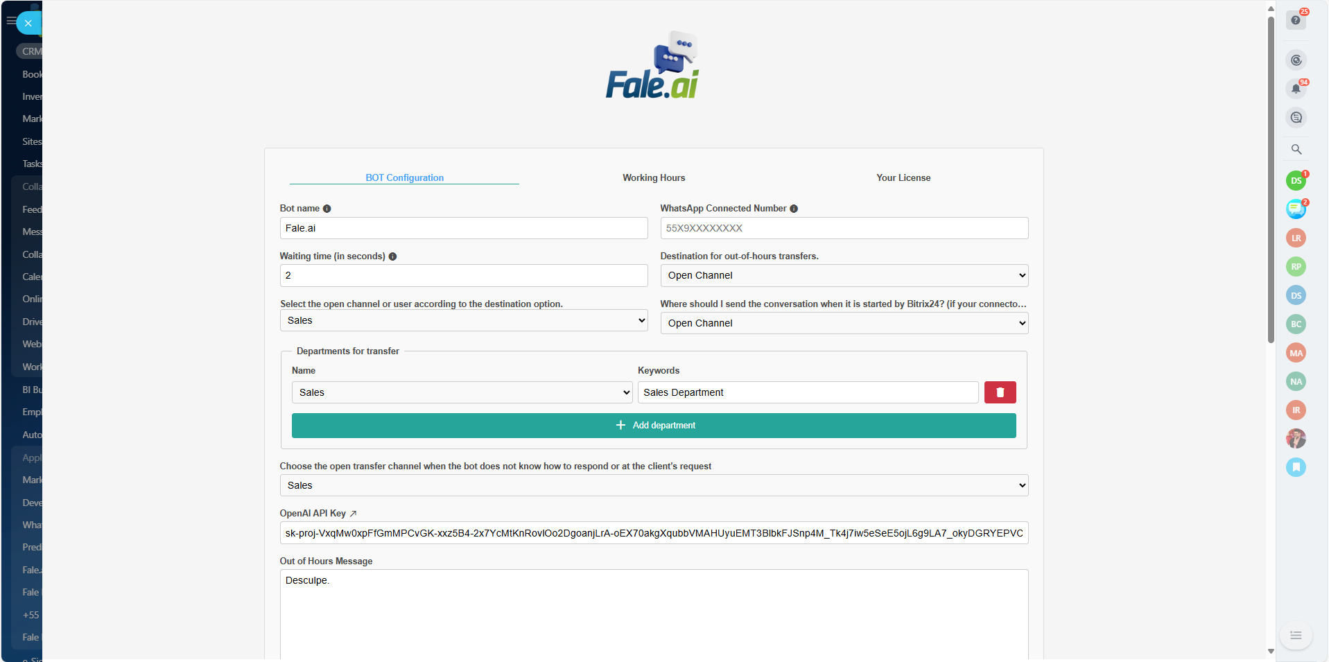 Fale.ai is your Artificial Intelligence agent for Bitrix24 Open Channels.