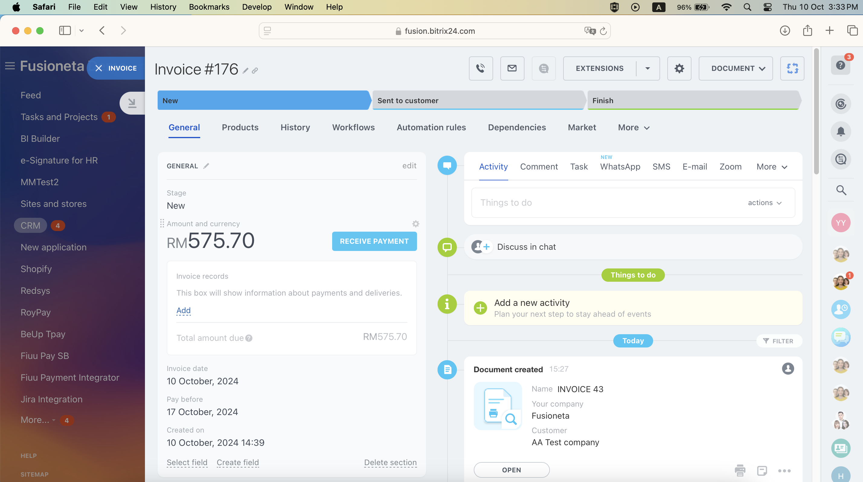 Automate your invoicing workflow with the eInvoice App. Seamlessly submit LHDN e-Invoices every time a new invoice is created in Bitrix24. Save time, reduce errors, and ensure compliance with automated submissions to the LHDN system, all from within your CRM.