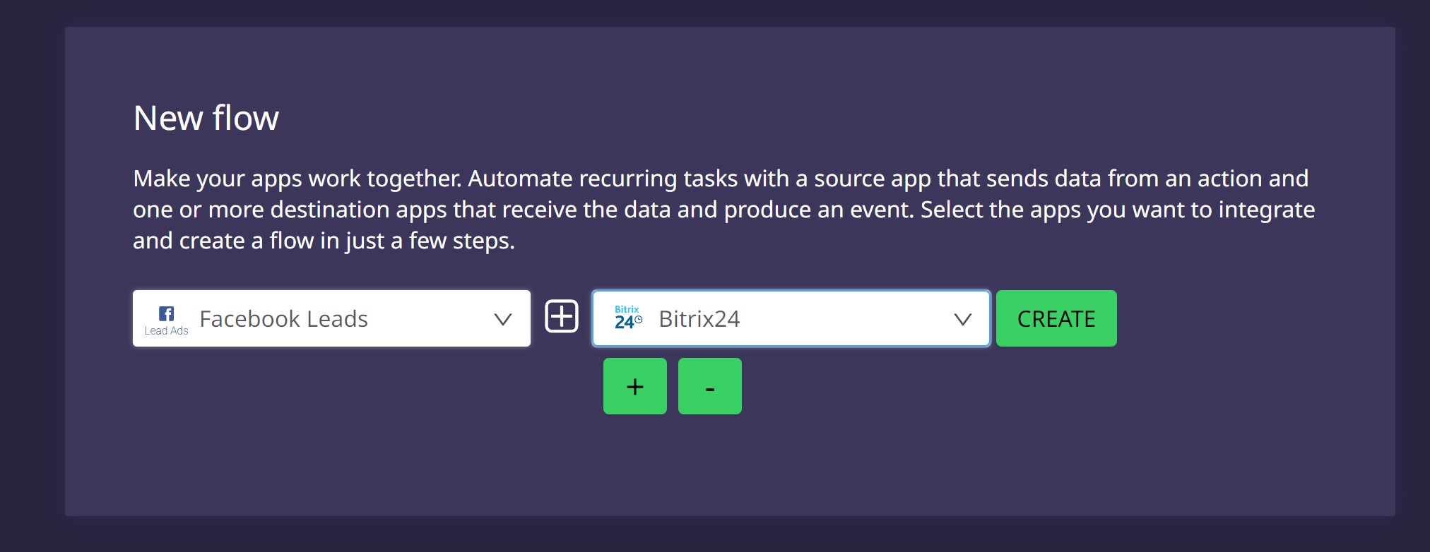 Use Bitrix24 as a TARGET to create records in your Bitrix account using data from any of our another connected apps.