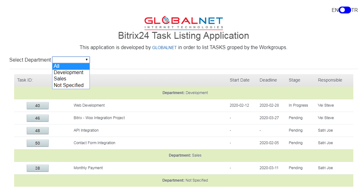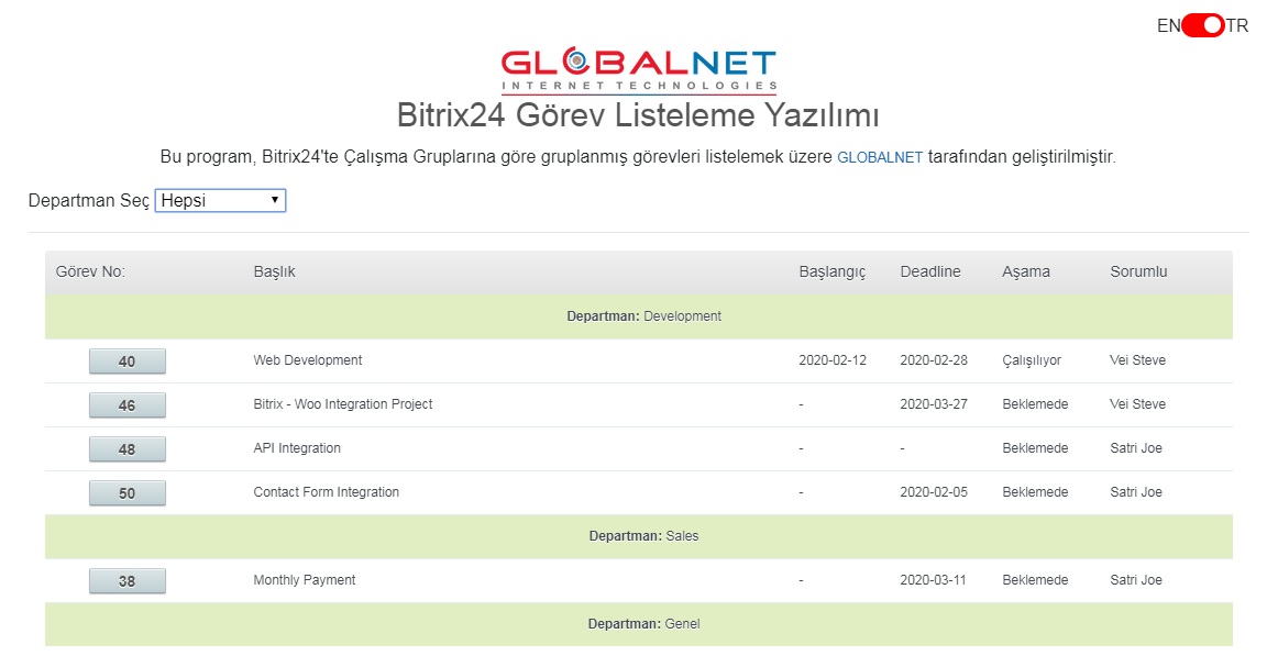 Listing Tasks grouped by the Workgroups. (Çalşma gruplarına göre görev listeleme)