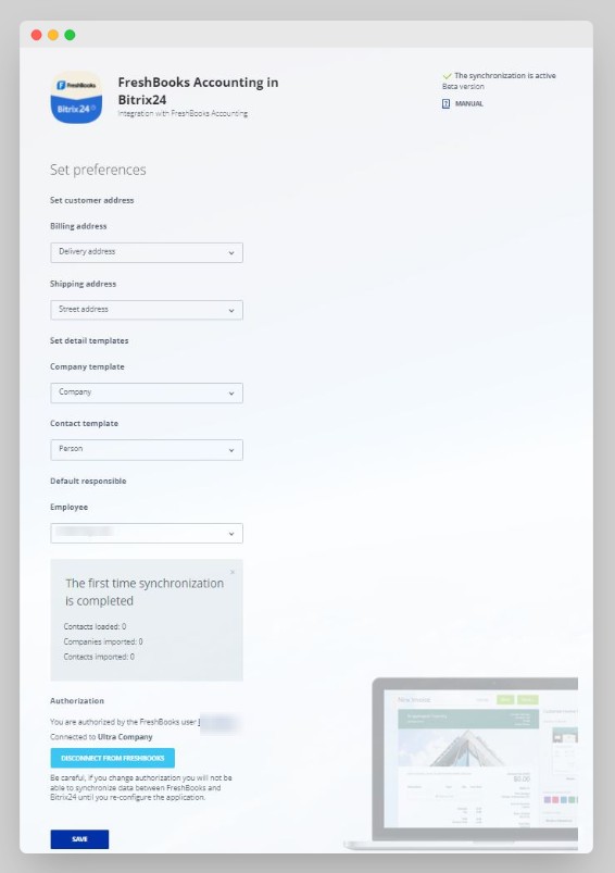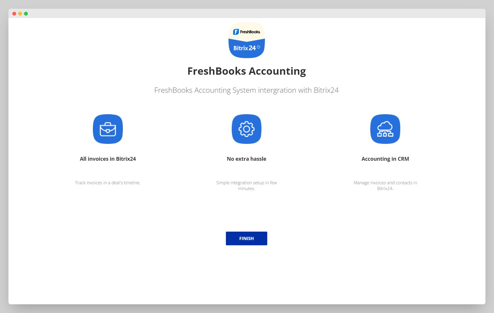 Use Bitrix24 and FreshBooks integration to manage daily tasks with maximum convenience: communicate with your customers in Bitrix24 and create invoices directly in FreshBooks. The integration will handle all customer data exchange between Bitrix24 and FreshBooks!