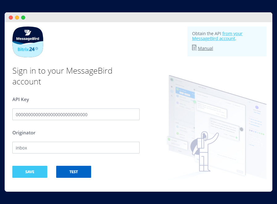 Bird integration allows automating your business by connecting SMS with automation rules, workflows, CRM details and CRM Marketing. By using the app, you create a fully automatic sales funnel integrated with Bird SMS. SMS messages will be automatically sent from Bitrix24 account exactly when needed. Make your employees everyday routine easier!