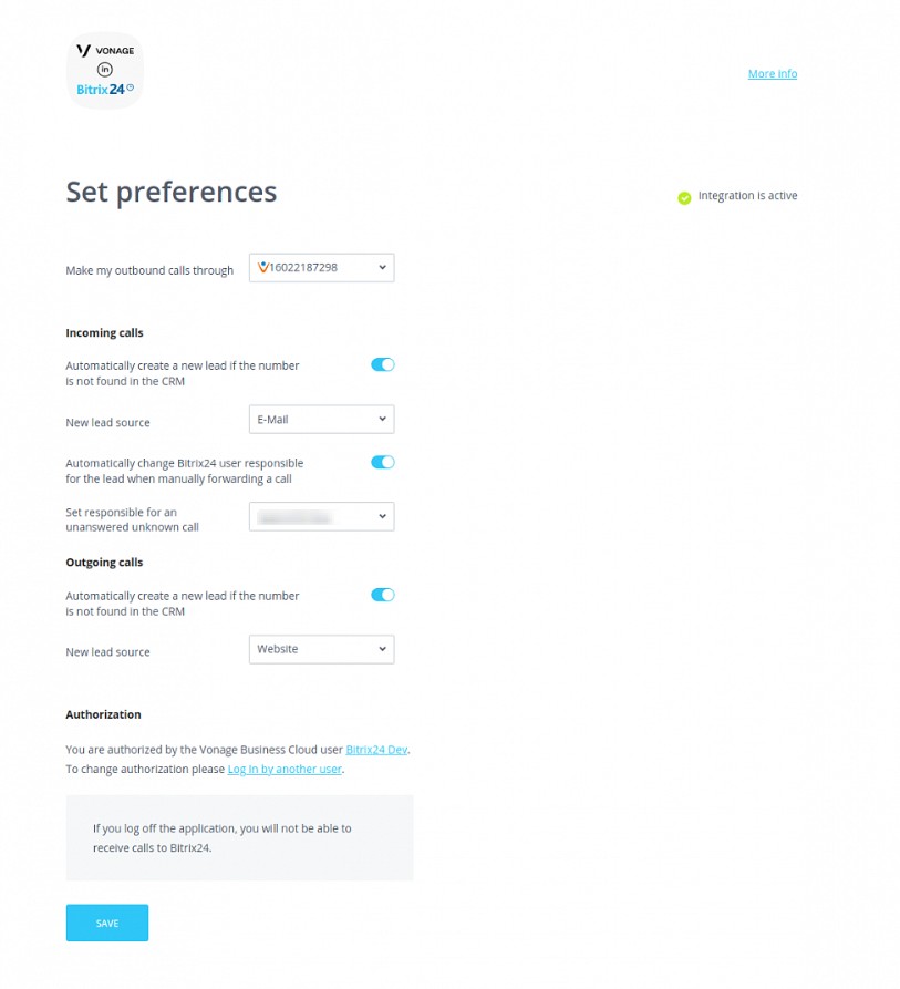 - Registered inbound calls and automatic generation of leads/contacts/deals depending on Bitrix24 settings;