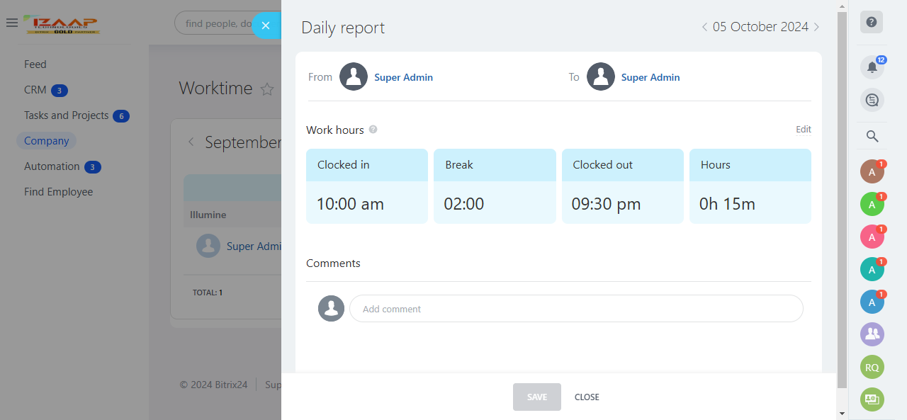 Key features include instant capture of clock-in, clock-out, break-in, and break-out events, which are automatically stored within Bitrix24's work time module. With streamlined access to accurate attendance data, HR can effortlessly export records in Excel, calculate working hours, and enforce attendance policies—all from one place. Additionally, employees benefit from the ability to track their own attendance in real-time, bringing transparency and accuracy to workplace management. This app transforms attendance tracking into a smooth, user-friendly experience for both HR and employees.