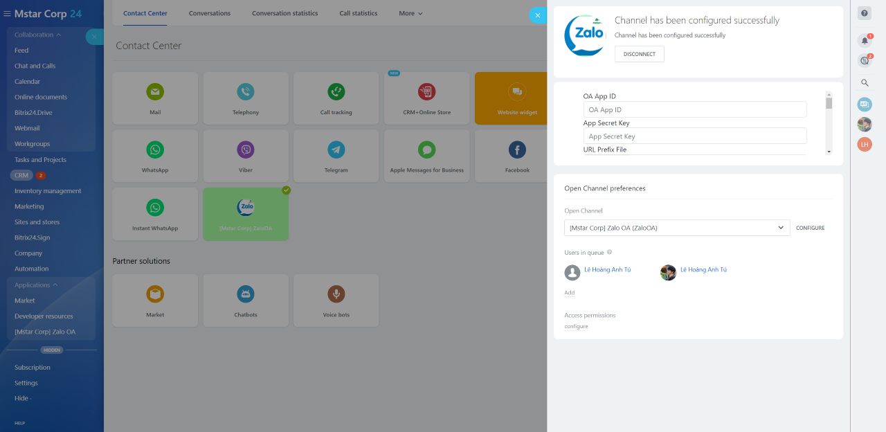 Integrate your Zalo OA into Bitrix Open Channel and Zalo ZNS