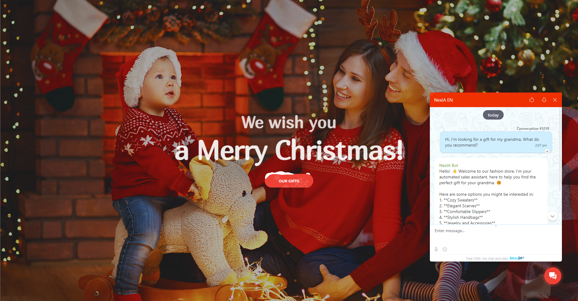 Nexia Bot, a cutting-edge chatbot, integrates with Bitrix24 and ChatGPT to provide precise, personalized responses to customer inquiries. It seamlessly transitions customers to human advisors for purchases, operates 24/7 across Bitrix24 chat channels, and boosts sales and efficiency.