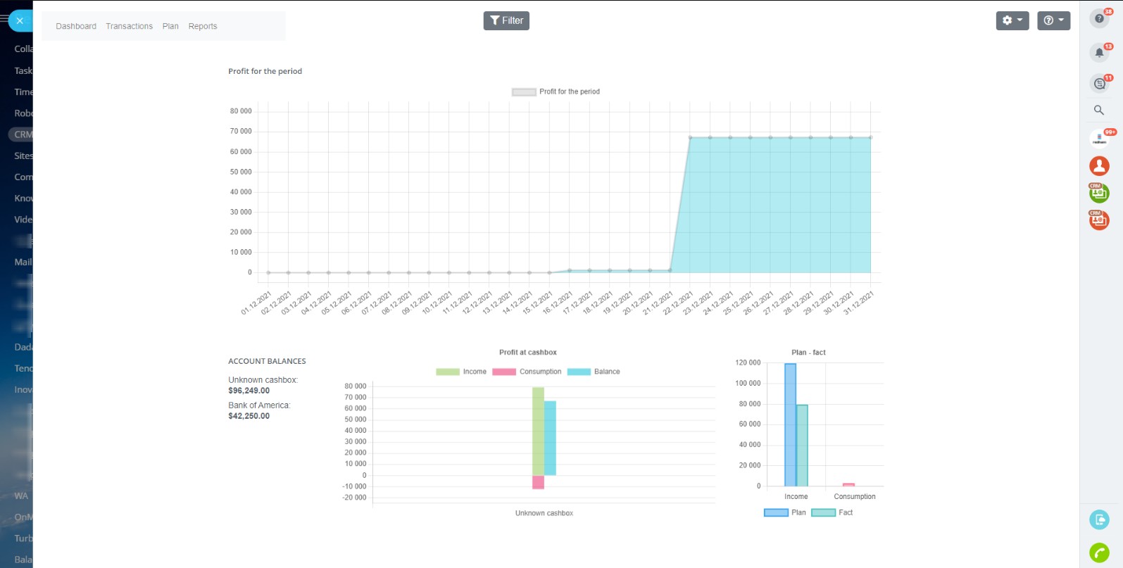 "Finance and management accounting" allows you to simplify the process of managing and controlling expenses, receipts and calculating margins for your transactions.