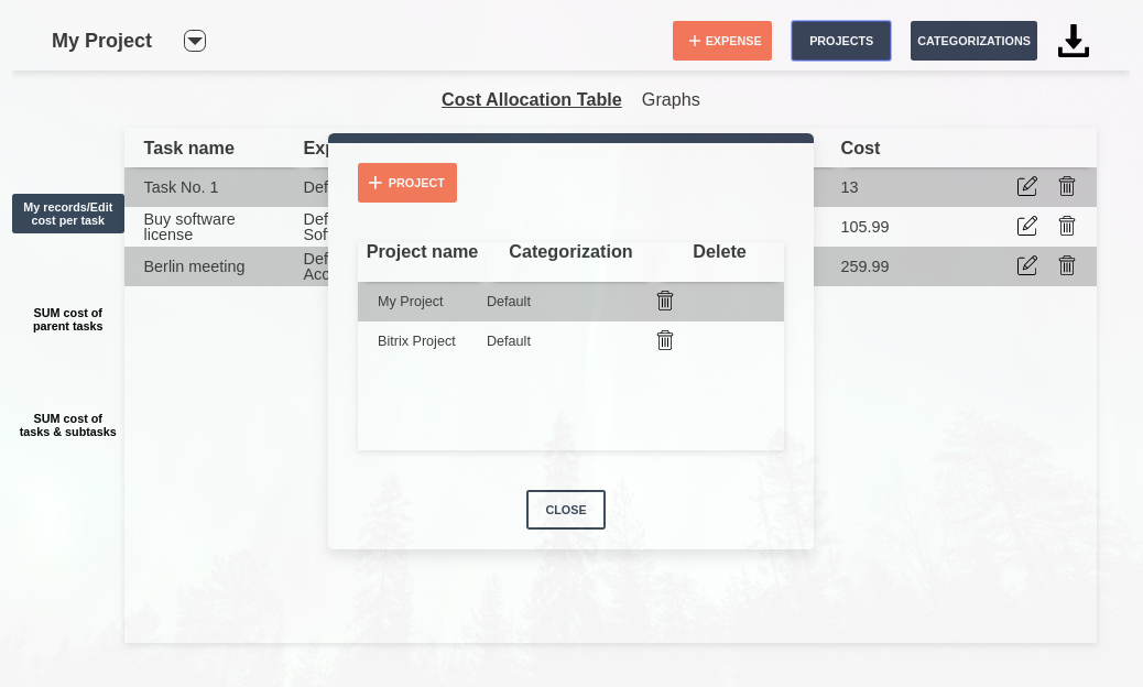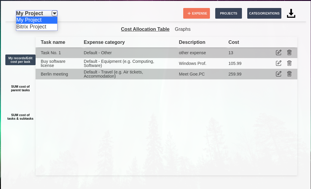 Project Expenses App helps project managers associate project Tasks with Project expenses and categories.