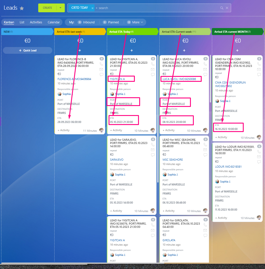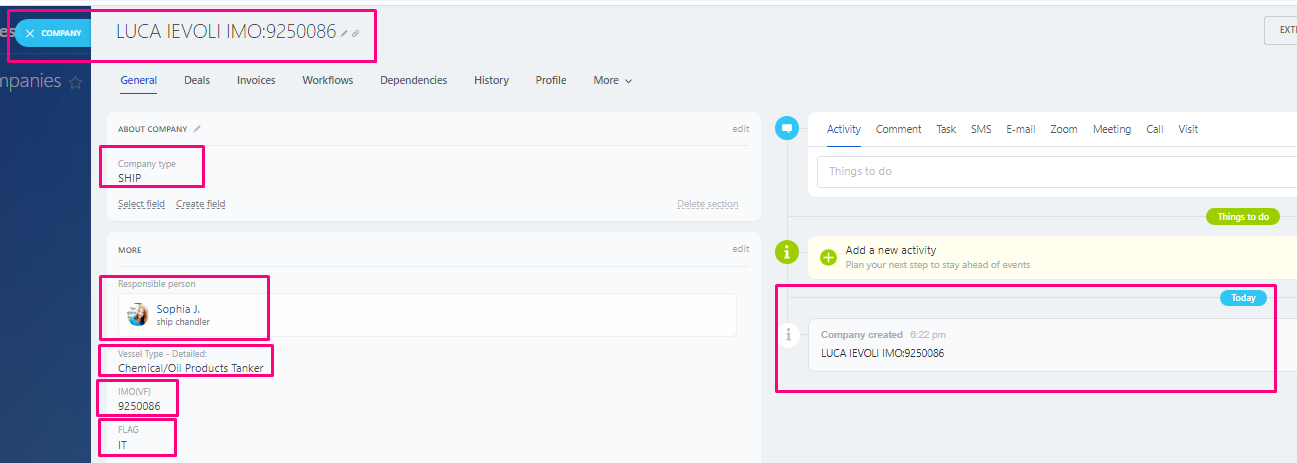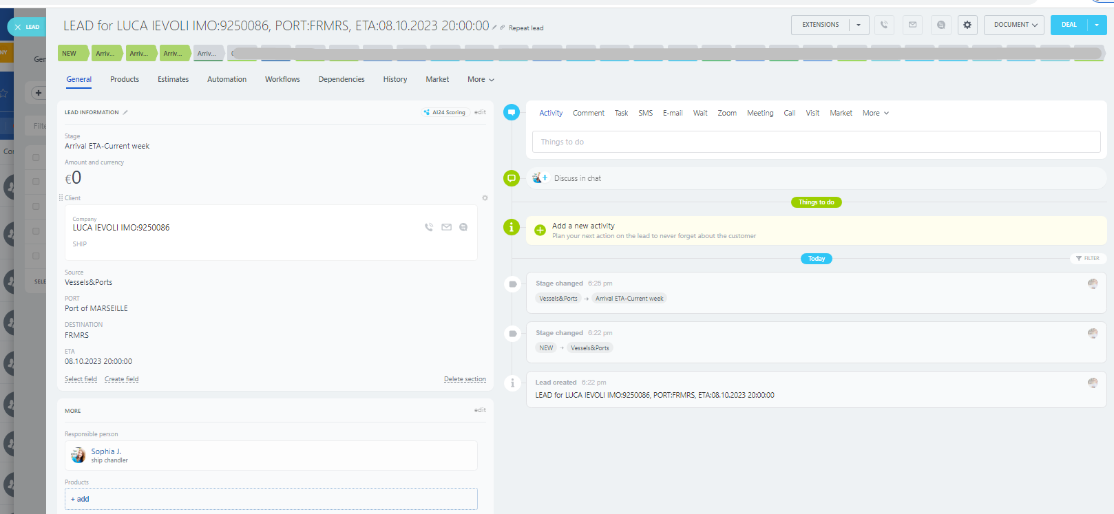 5. Automated Linking: Every port call loaded as a LEAD or DEAL is automatically linked to its corresponding vessel.