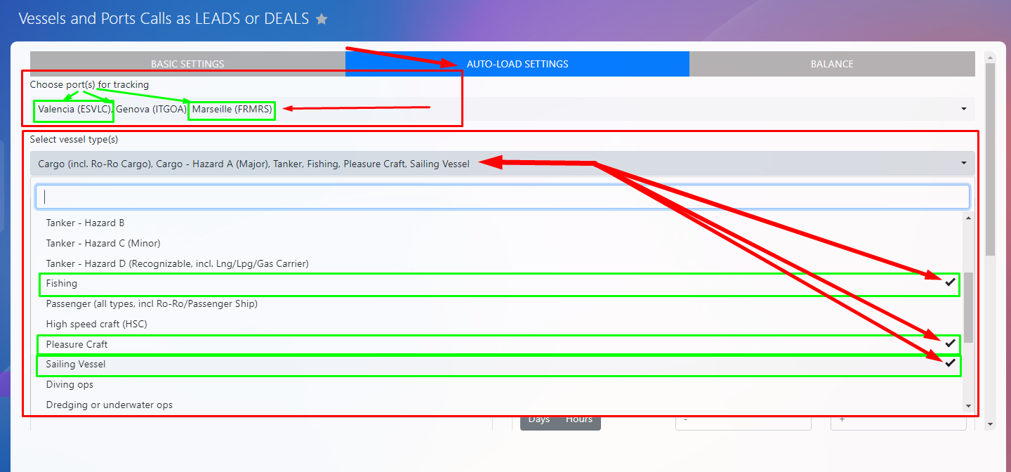 1. Choose What to Monitor: Select the ship types and specific ports you're interested in.