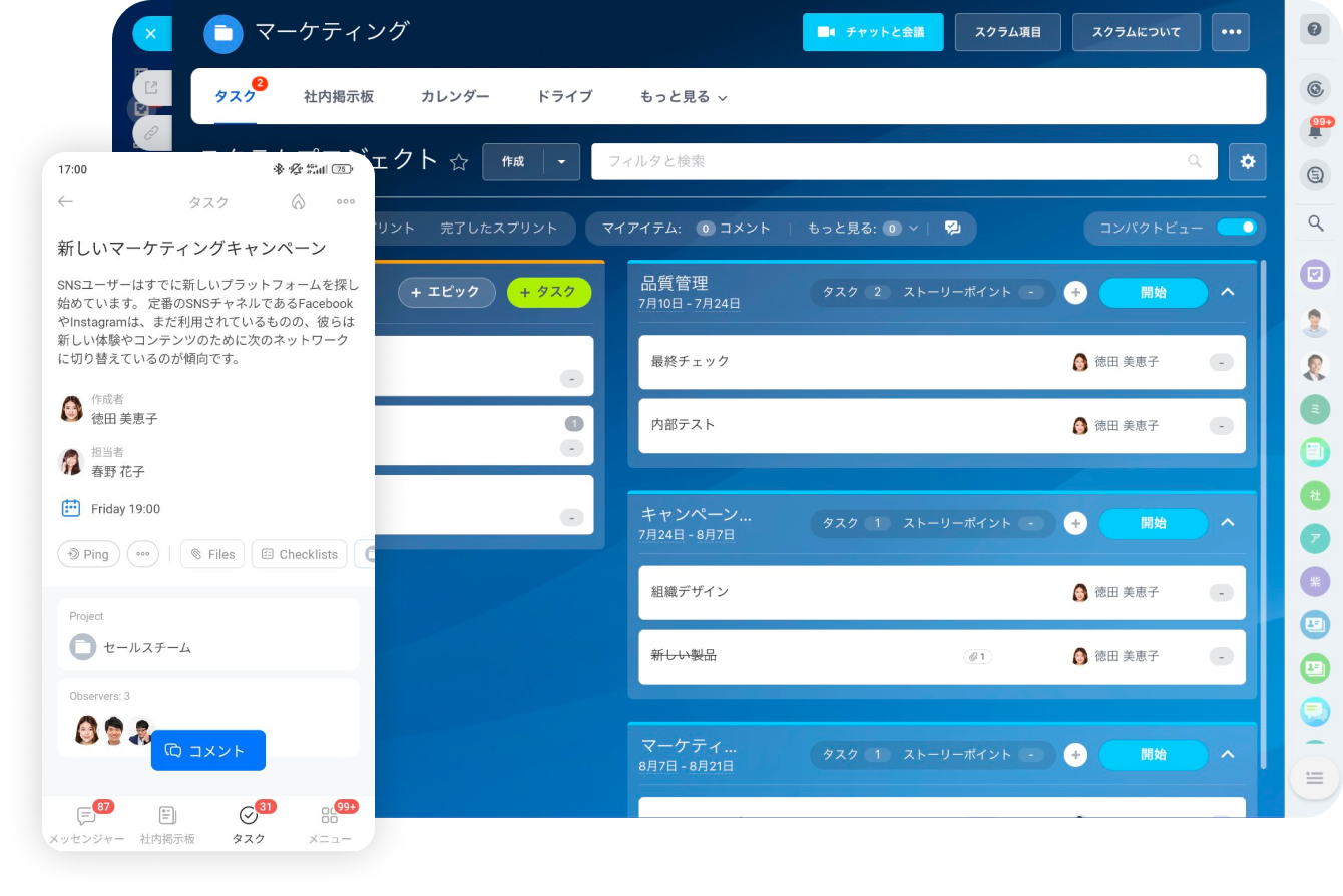 Bitrix24メッセンジャーは当社の他のコラボレーションツールとCRMと有機的に連携し、迅速で生産性が高く、安全なコミュニケーションを実現します。
