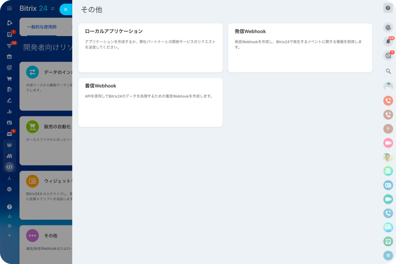 Bitrix24 の Webhook を使用することで、製品の基本機能を拡張・強化し、特定のニーズに合わせて調整できます。